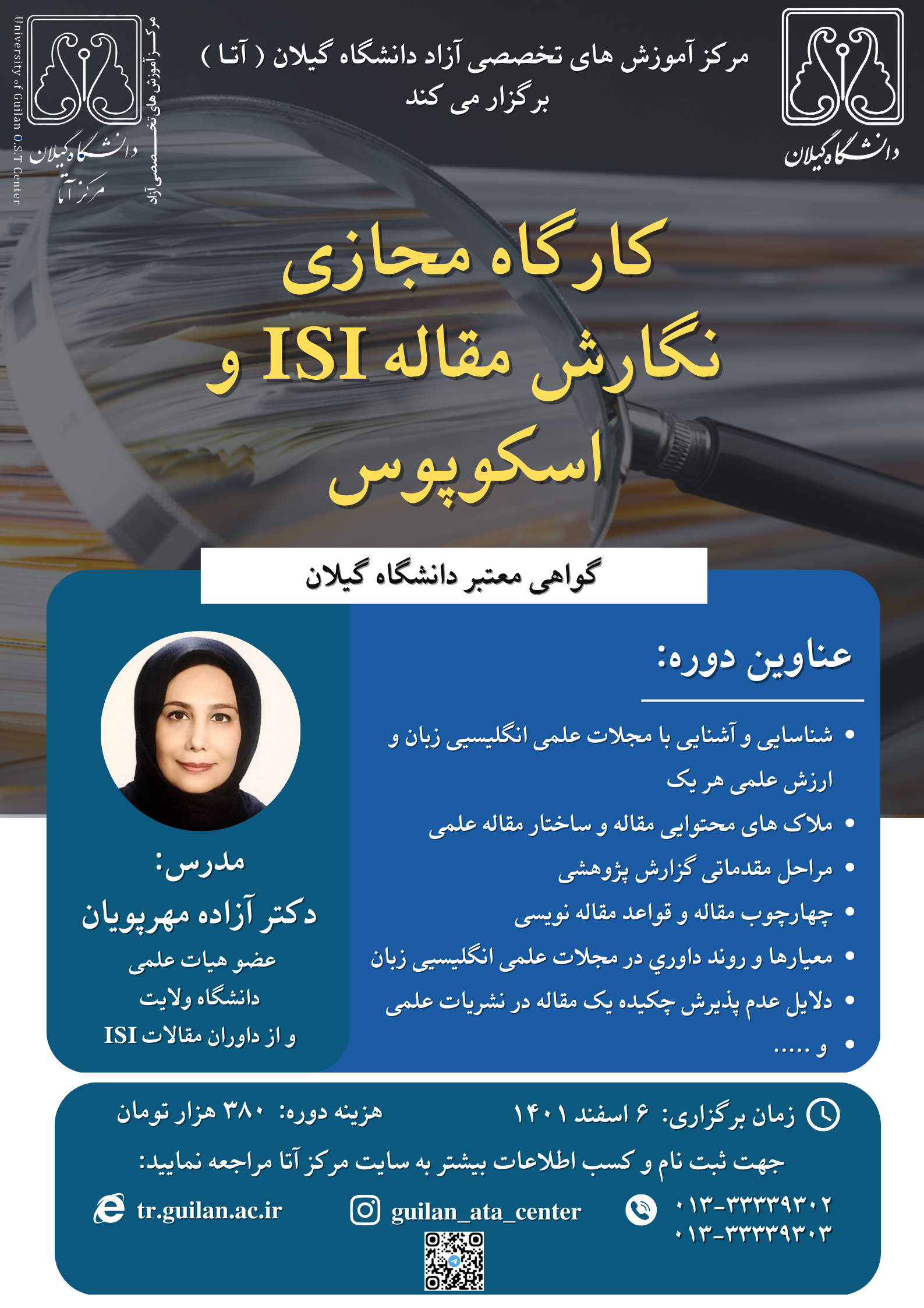 مخاطبین دوره : اعضای هیئت علمی دانشگاه ها و مؤسسات پژوهشی، دانشجویان تحصیلات تکمیلی، پژوهشگران حوزه های مختلف علمی